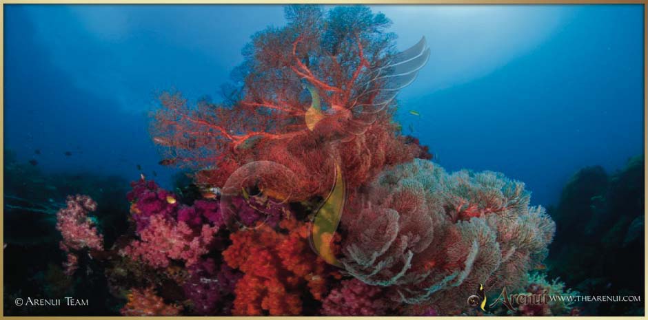 Mantis shrimps, leaf-fish, giant bumphead parrotfish, lionfish, moray eels, cuttlefish, anthias, snappers, angelfish, damselfish, frogfish, ribbon eels, wonderpus and mimic octopus, nudibranchs, weedy scorpionfish, gorgonians, sea fans, soft and hard corals, sponges, dolphins, reef sharks, sperm whales and even whale sharks