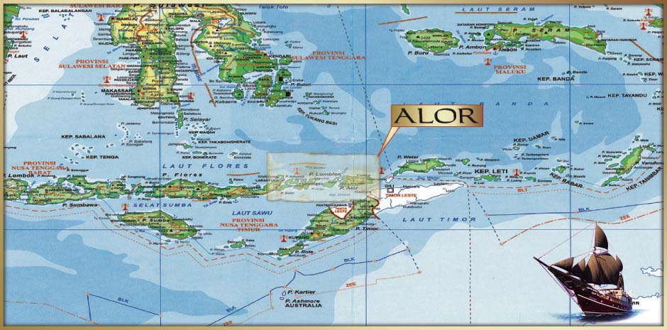 Most cruises that cover the Alor or Flores area start or end at the post of Maumere, on the northern coast of east Flores island. Maumere is roughly 430 nautical miles east of Bali in East Nusa Tenggara province (Nusa Tenggara Timur) - in the Lesser Sunda Islands. This region is home to a world record, established when a scientific expedition recorded 1,200 species of fish, including some new to science, all found in Maumere Bay alone!